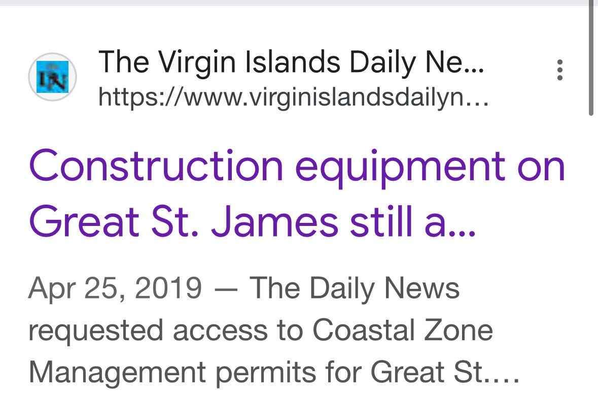 Regulators and inspectors were denied access. Epstein would not allow them on the island to conduct routine site visits and inspect what they said was “unpermitted and potentially damaging construction activity on Great St. James,” according to a law suit filed by the Virgin Islands.