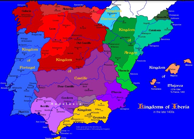 The MAPS of the 750 AD period to 1492 reveal how the 800 years of Muslim rule as a Caliphate was eventually overthrown by use of mercenaries (Conquistadors) of the Monarchy in 1492. These are fascinating maps, interactive and highly illuminating to someone new to this unfolding significant part of history. The power of a succession of Popes to influence the outcome of marriages between the various self created monarchy lines was vital. I recommend further reading on the subject of illegitimate, interbred aristocracy imposed on the peoples of a disunited landmass which eventually became known as a united Spain. The religious Catholic zeal grew out of the French Inquisition of the 12th century. Gradually it became a uniting belief to spread the faith and seek wealth through exploration of, as yet, unknown territory.