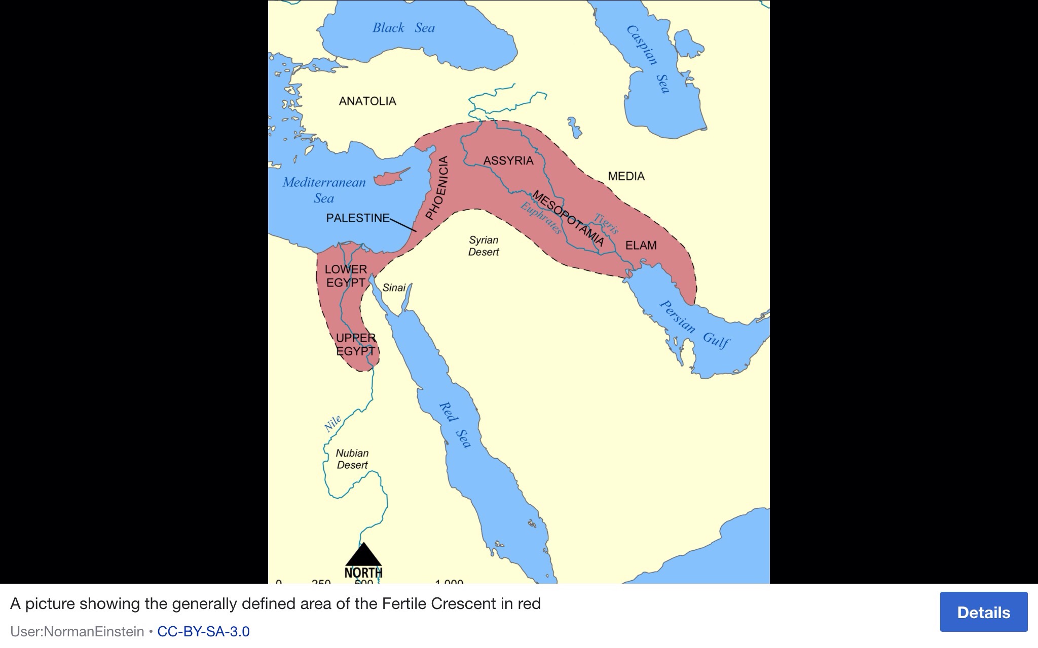 The Fertile Crescent is traditionally associated (in Jewish, Christian and Muslim faiths) with the earthly location of the Garden of Eden.