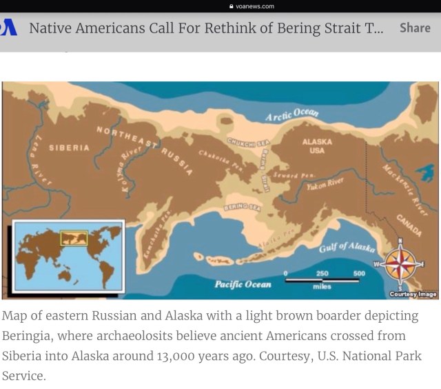 Stories handed down over millennia cannot be ignored. There is often truth in such ancient tales. So many Native Americans are highly sceptical of archaeologists and other scientists, mostly white, purporting to have found evidence which supports the Bering Strait theory.