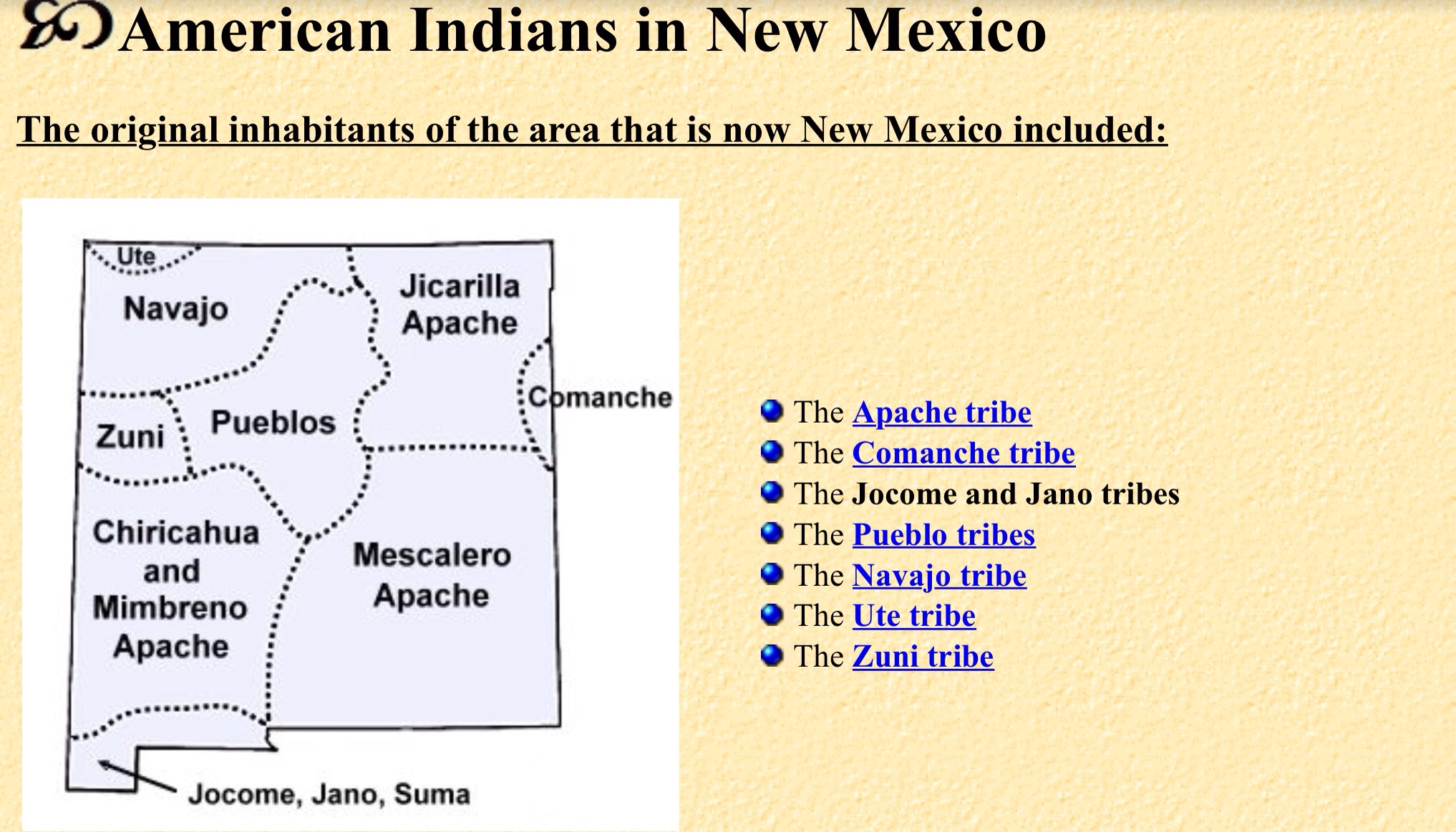 Looking now at the present day Native American Indians of New Mexico (See http://www.native-languages.org/nmexico.htm)