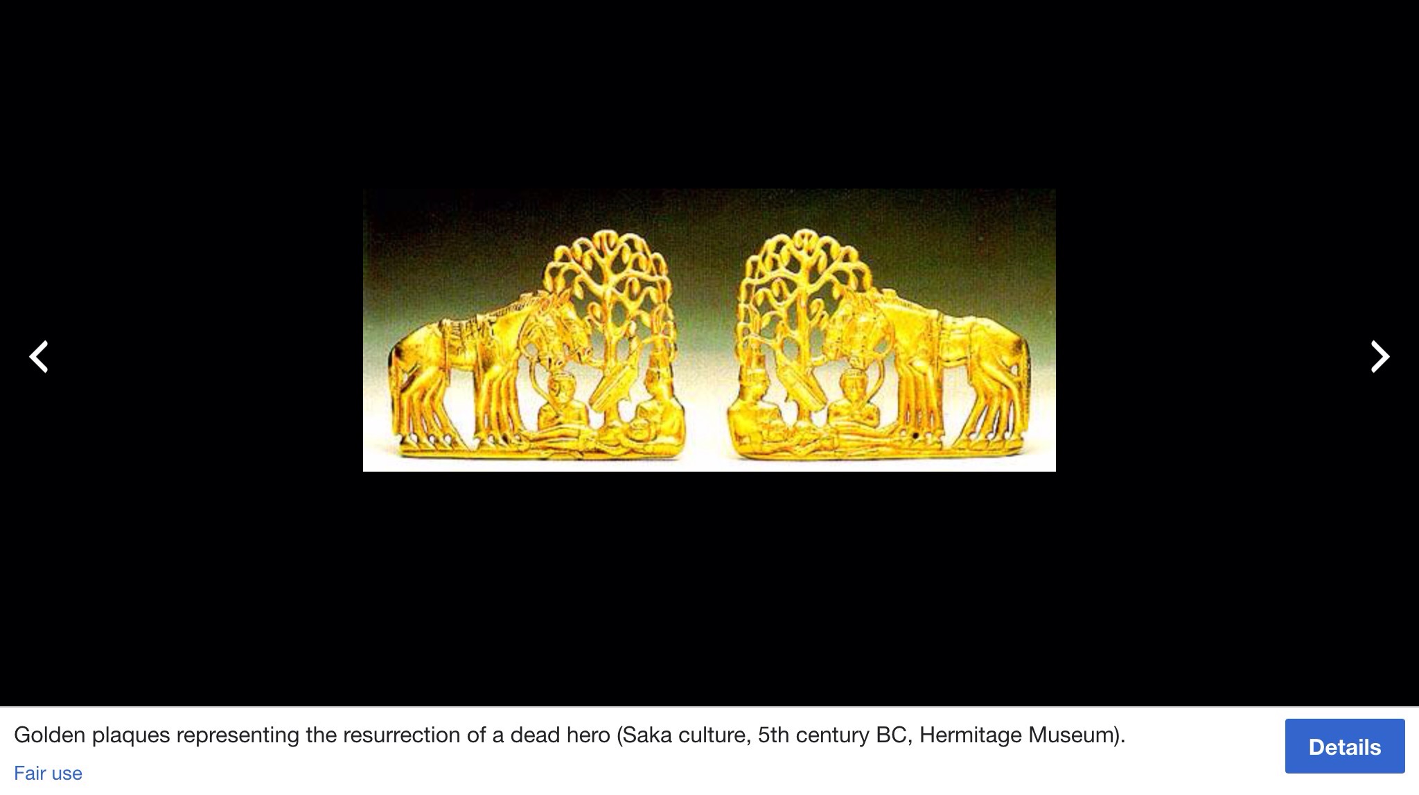 Image of plaque from Saka (N.B. Saka is an Iranian word equivalent to the Greek Scythes, and many scholars refer to them together as Saka-Scythian), Sakas were Iranian-speaking horse nomads who deployed chariots in battle, sacrificed horses, and buried their dead in barrows or mound tombs called kurgans.