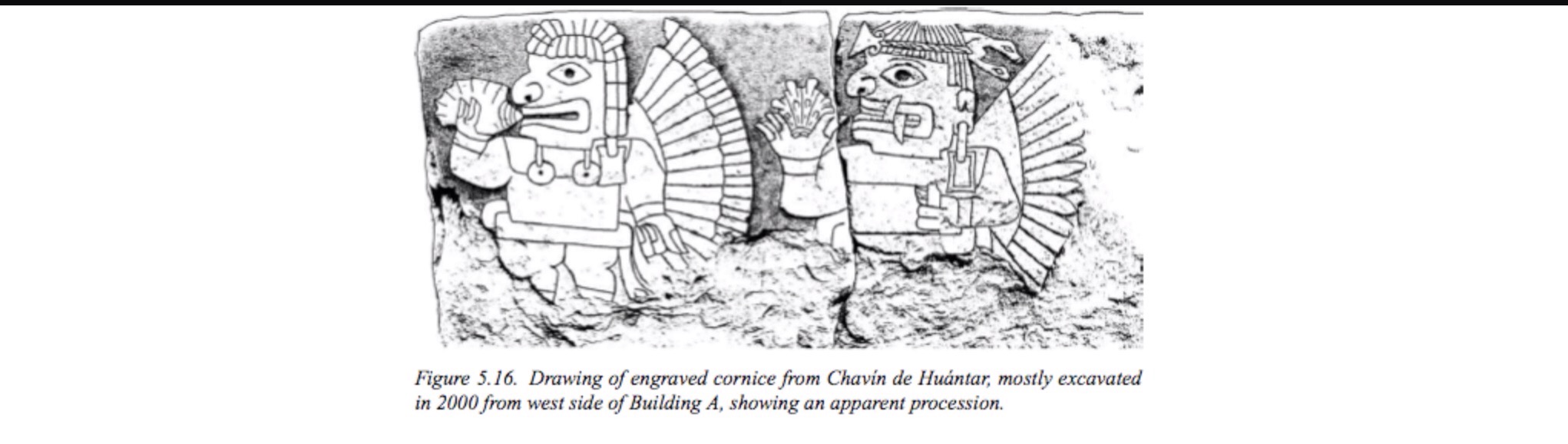 The Chavín priests would put themselves in trances by using coca leaves, mescaline from San Pedro cacti, certain mushrooms and a snuff made from powdered anadenanthera seeds. These latter named seeds contain DMT (dimethyltryptamine) which requires a preparation of mescaline prior to the hard hitting DMT. The resulting contortions, growls and grimaces exhibited by the user are typically understood by Amazon cultures as feline transformation. This is usually a solitary experience making the subject hunch in a ball, eyes closed, absorbed in an interior world.