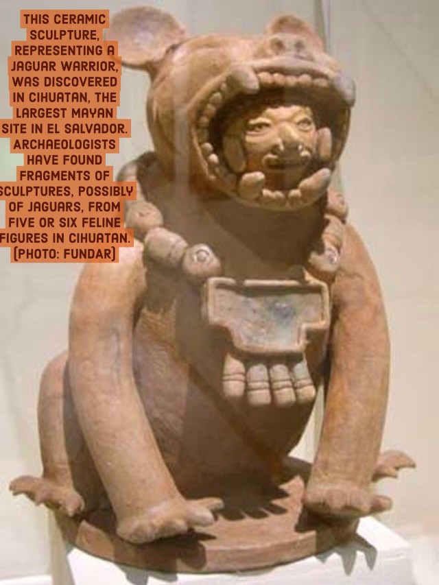 This image below is a ceramic sculpture, representing a jaguar warrior, and was discovered in Cihuatan, the largest Mayan site in El Salvador.