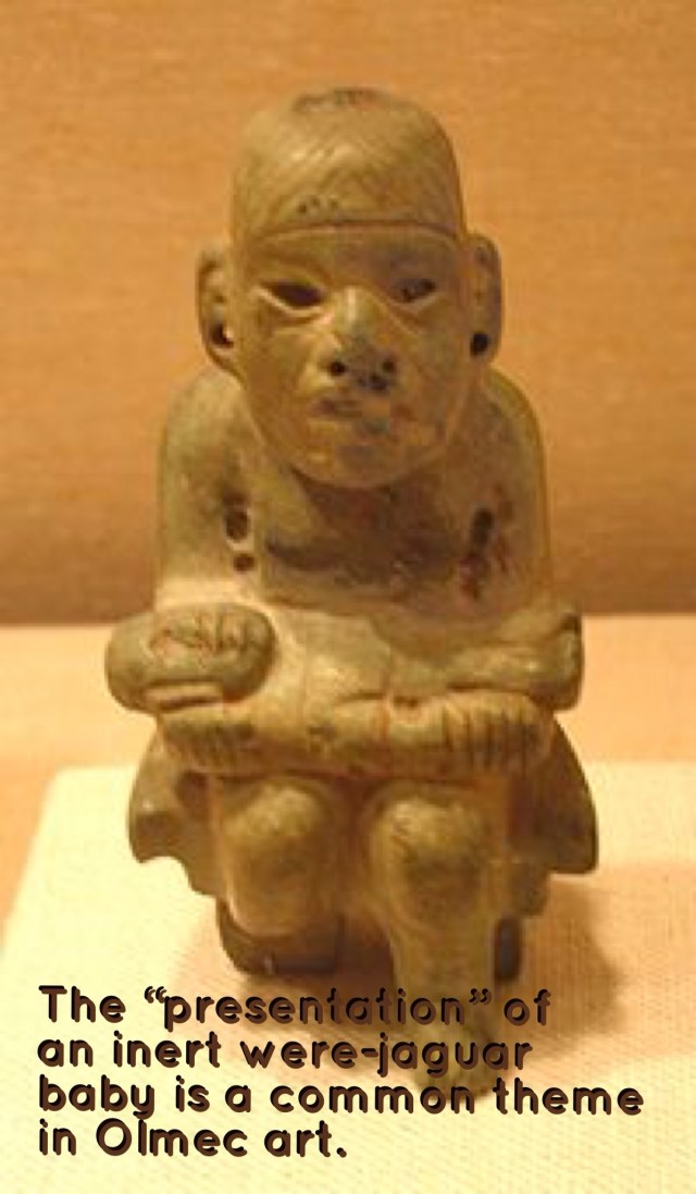 Around 1600–1500 BCE, the early Olmec culture had lived in the tropical lowlands of south-central Mexico, in the present-day states of Veracruz and Tabasco. They were the first Mesoamerican civilization, and laid many of the foundations for the civilizations that followed. It is possible they had a deity which was part human, part jaguar, born of woman which has been named by researchers as a were-jaguar.