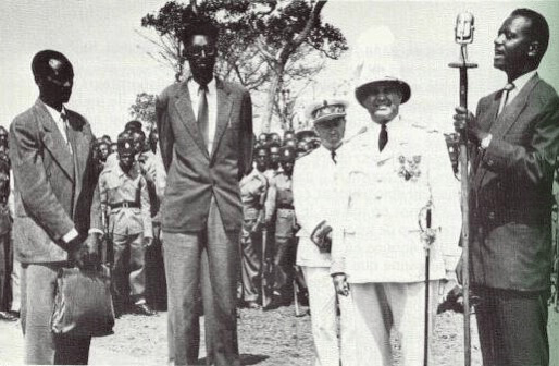 Image of 20th century Tutsi King with Belgian colonialists before Independence in 1961.