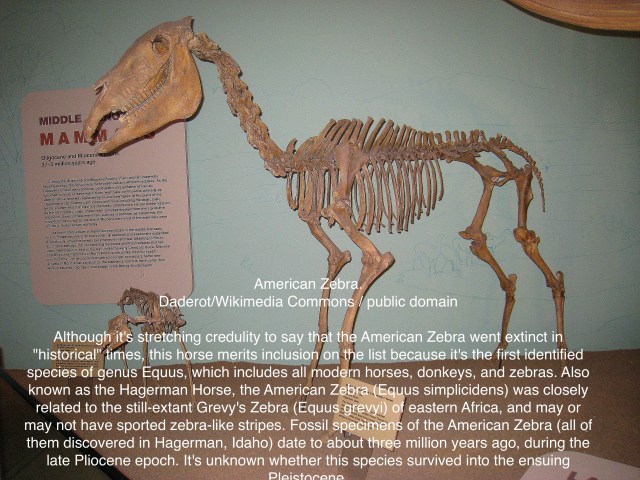 Another extinct Equus family is the American Zebra, roaming the Idaho area around 3 million years ago.