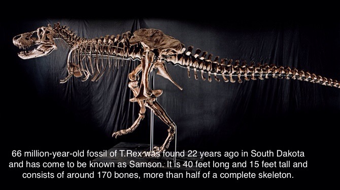Above, skeleton of a Turkey next to the mighty T.Rex.
