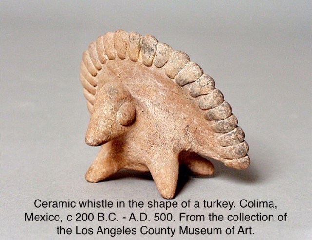 Thousands of years later, but long before the Europeans arrived, the Americas were so familiar with wild turkeys that even this small clay whistle was beautifully created long before Christianity.