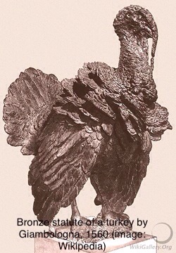 9 years after Columbus discovered the New World, King Ferdinand II of Aragon – acting through the bishop of Valencia – ordered Miguel de Passamonte to bring a tom and a hen back to Spain for breeding. There is no written evidence that this plan to breed turkeys did succeed. But they became fashionable in Italy where it has been recorded Alessandro Geraldini, Bishop of Santa Domingo, presented his friend, Cardinal Lorenzo Pucci, with a pair in 1520, for example, he gave instructions that they were to be admired for their rarity rather than eaten and for a brief while thereafter they became the latest fashion accessory in Renaissance Rome. No self-respecting cardinal thought their palace gardens complete without a few birds strutting around the place. Cardinal Salviati, a member of a particularly notable Florentine family, was especially famous for his flock of turkeys.