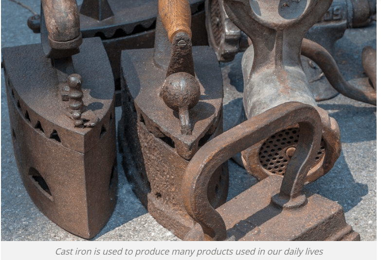 Gradually iron ore was mined in many parts of the world. Today we create casts to mold iron into products for making things like manhole covers, cast iron pipes, valves and pump bodies in the water industry, guttering and drainpipes, cylinder blocks in car engines, Aga-type cookers, and very expensive and very heavy cookware.