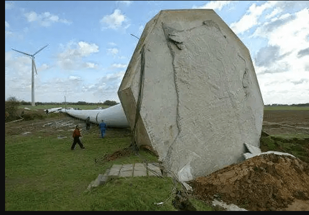 And after all that use of resources, damage to the environment and billions of pounds spent, still, these concrete foundations can fail and bring 33 turbines crashing down.