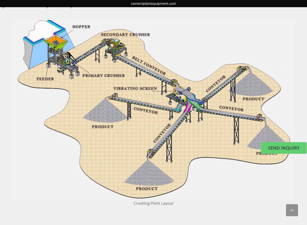 The crushed rock is combined with other ingredients such as iron ore or fly ash and ground, mixed, and fed to a cement kiln.
