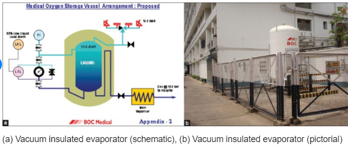 - Vacuum Insulated Evaporator: Storage system of liquid oxygen