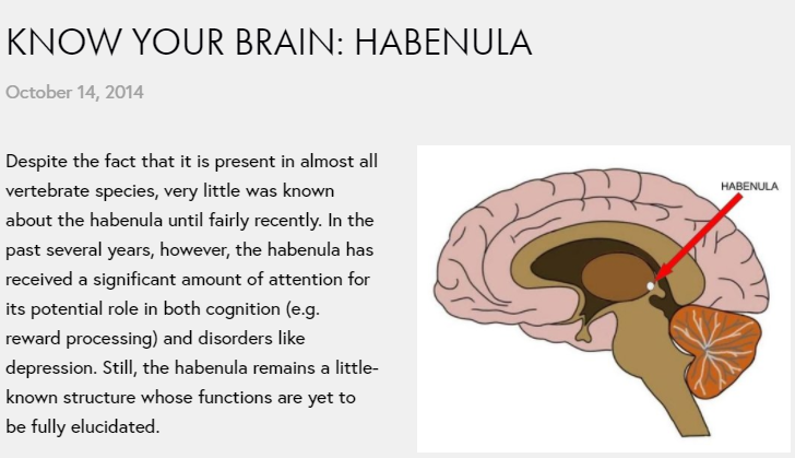 This article describes where the habenula is and explains it is a relatively new area of the brain found by neuroscientists. The knowledge gained will no doubt benefit us all over time, but any scientists working for corporates may redirect the knowledge into more sinister avenues.