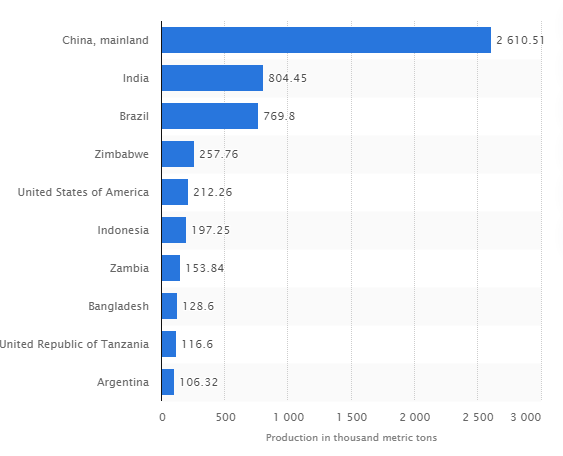 In 2019 these were the leading tobacco growing countries: