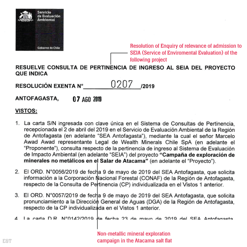 E&T has learned from a source that only last week, the Servicio de Evaluación Ambiental, Chile’s environmental assessment service, permitted the company Wealth Minerals Chile SpA, a natural resources company concentrating on developing lithium brine property packages in Chile, to explore the northern part of Salar de Atacama. The location would lie near a Ramsar site – defined as a wetland site designated to be of international importance under the Ramsar Convention – as well as based near tourist attractions where water supply is critical to provide local people with income.