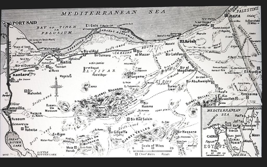 Description English: Map of the Northern and Central Sinai area in World War I. Date 1917 Source “The Times History of the War” Volume X, page 368. Author British Government